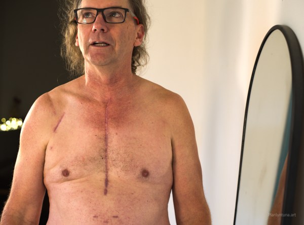 I am male 54 years old survived two life threatening attacks had a few operations with a few scars which my wife’s freind was interested in making me exhibit for her project.