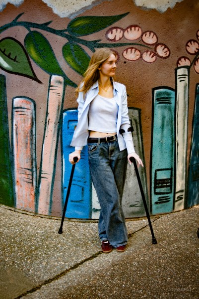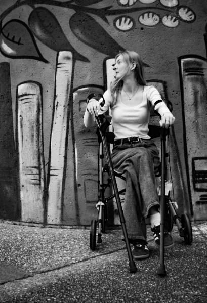 It was empowering, it felt good to carry my walker and crutches around without actually using them. I realised I had strength in my legs and stamina to walk, my old mobility aids had once kept me on my feet and allowed me to go to school, now they were a symbol of how hard I fought to be where I am now.