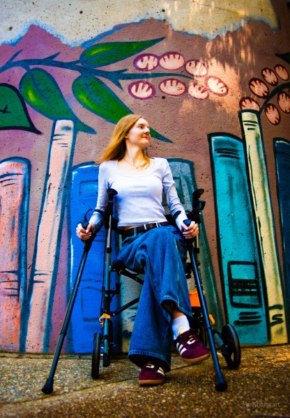 I’m Rika, I’m a Canberra based architecture student and designer for the student magazine. I met Marilyn through a group art exhibition “What did they tell you?” in Sydney in January 2025. In January 2020 when I was 15 I became sick with what I thought was a bad flu, after many weeks and months of my walking becoming more unsteady, and struggling everyday with pain, numbness and dizziness despite having normal test results I was diagnosed with FND (Functional Neurological Disorder). In August 2022 I was admitted to hospital, where I stayed for six months relearning how to stand, walk and eat. Just as a baby might learn to walk, I learned how to put one foot infront of the other, how to chew, swallow, breath, stand and roll myself around in my wheelchair enough to get discharged and start my final year of school. In December 2023 I graduated year 12 and took my first steps without help from a wheelchair, walker, crutches or cane.