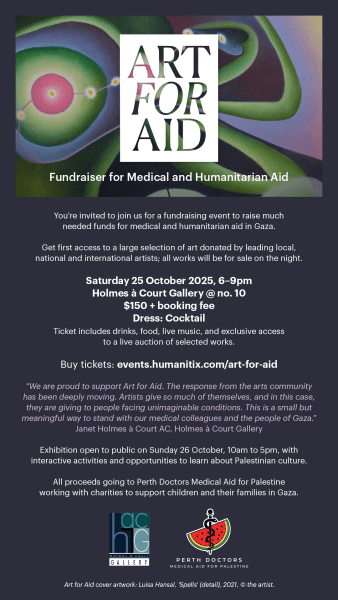 Art for Aid — Saturday 25 October, 6-9pm at Holmes à Court Gallery @ no. 10