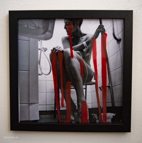 This work was created in response to a botched surgery I endured only months ago, which left me seriously injured and profoundly changed. In the image, the remnants of hospital care linger—the tape and heart monitor stickers still clinging to my chest—as a stark reminder of the clinical detachment I was sent home with. The acrylic paint represents blood, a raw and visceral symbol of the physical trauma and the ongoing pain I continue to endure. As a woman living with endometriosis, this piece embodies both my suffering and resilience, giving voice to an often-invisible experience.