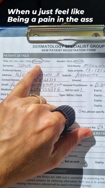 My stance with social situations like this, is to be so nice it makes them even more annoyed with life, today was my day to truly shine… As I look at this standard patient form, and my marital status section I look at what choose, men have either Mr , Dr or Master with no clear dictation on marital status, yet my section was Miss, Mrs or Ms all that are the complete opposite.
